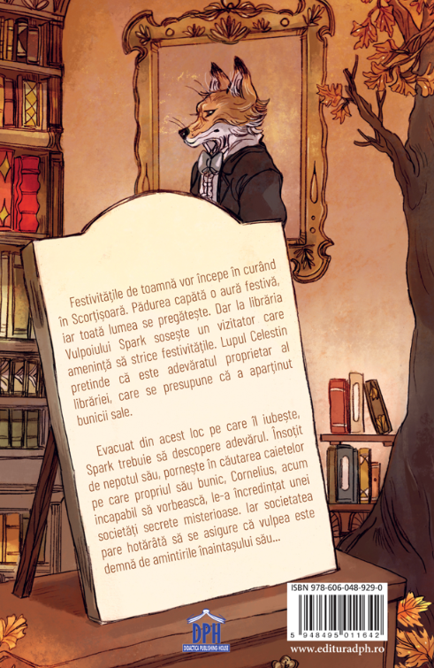 Aventuri din pădure – Jurnalul Vulpoiului Cornelius, vol. 2 îi invită pe copii într-o nouă poveste emoționantă din pădurea Scorțișoară, locul unde magia, misterul și prietenia se împletesc în fiecare colț. Toamna aduce pregătiri pentru festivități, dar liniștea comunității este tulburată de apariția Lupului Celestin, care susține că librăria Vulpoiului Spark îi aparține de drept.