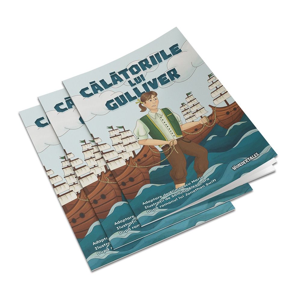 - Informatii: autorul este Jonathan Swift, adaptarea este realizata de Alimpescu Maria, iar desenele de Salajan Alexandra.
