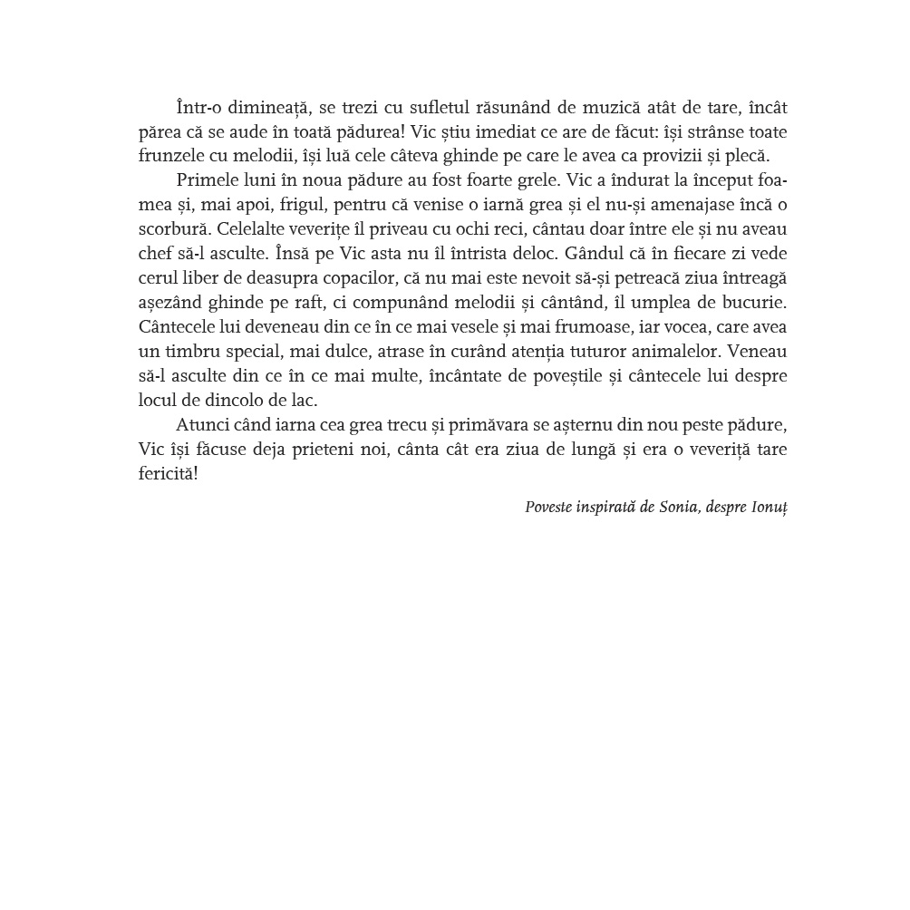 Această carte este o lecție despre importanța curajului, despre a înfrunta teama și despre cum să îți urmezi idealurile, indiferent de provocările care apar în calea ta. Ilustrațiile vibrante semnate de Alexia Udriste aduc și mai mult la viață aventurile pline de farmec ale personajului principal, făcând cartea o lectură ideală pentru copii între 4 și 8 ani.
