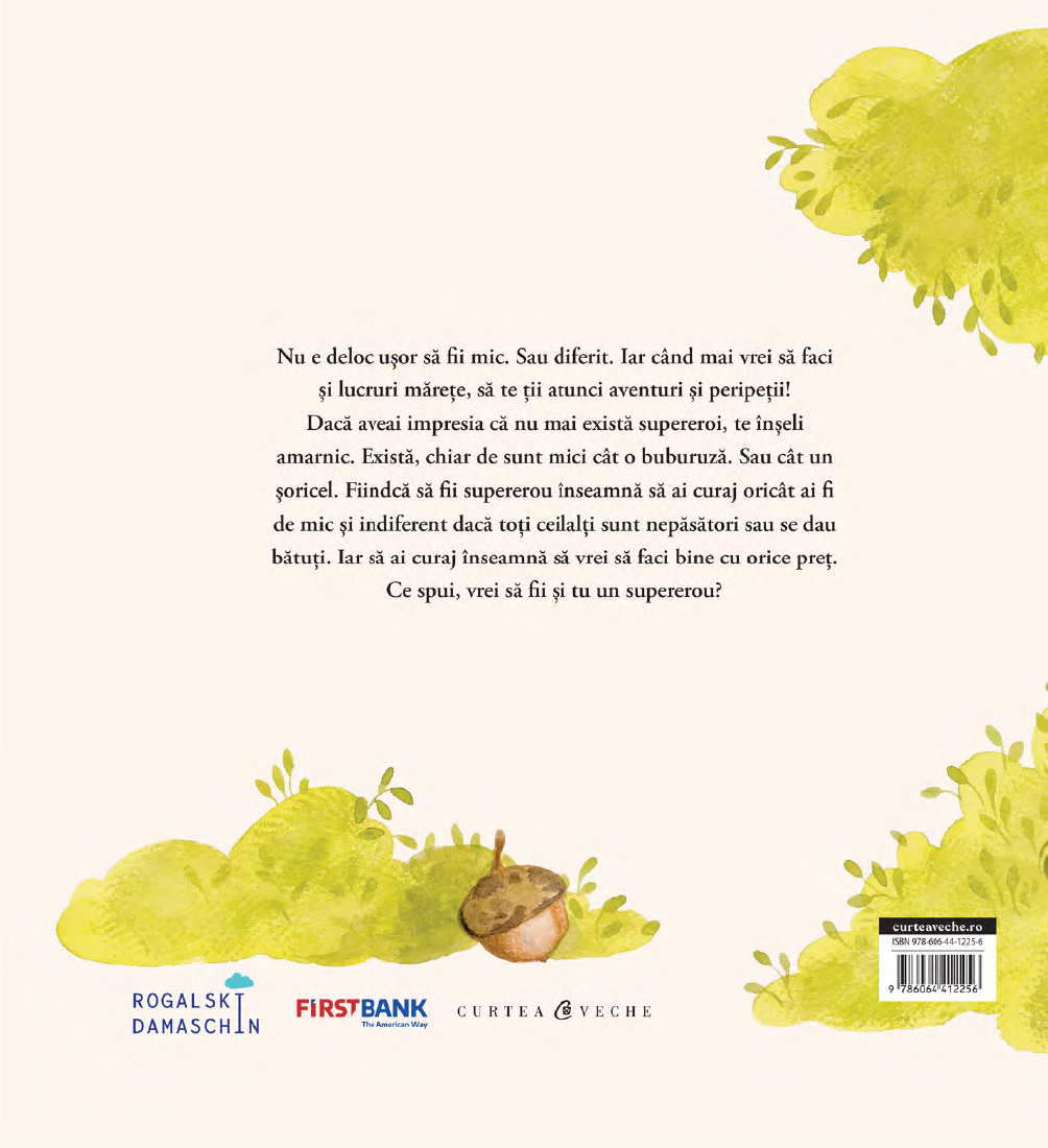„Cartea curajului” de Adina Rosetti este o poveste plină de învățăminte pentru copii despre curajul de a fi diferit și de a face lucruri mărețe, chiar și atunci când ești mic. Aventurile și peripețiile unui supererou la scară mică inspiră micii cititori să înfrunte fricile și să își urmeze inima, indiferent de obstacole.
