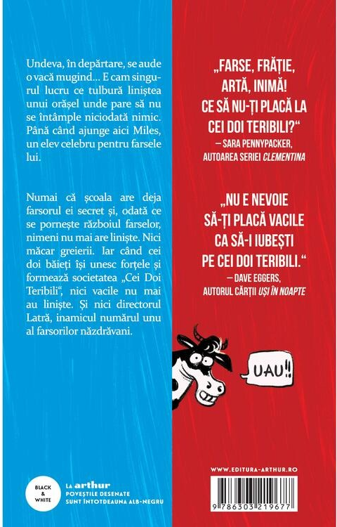 Primul volum al seriei Cei doi teribili îi introduce pe cititori într-o poveste plină de umor și jocuri de ingeniozitate. Miles Murphy, cunoscut pentru talentul său impresionant de păcălici, se mută într-un oraș liniștit și este convins că va domina rapid scena farselor din noua școală. Dar planurile lui se complică atunci când descoperă că acolo există deja un farsor legendar, iar reputația acestuia este greu de depășit.