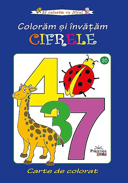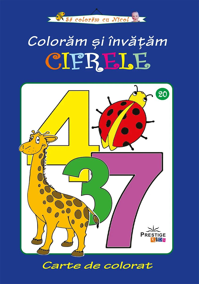 Coloram si invatam cifrele Cartea prezinta activitati variate, cu ajutorul carora se pot exersa coloratul, scrisul si numaratul. - cifrele sunt punctate si trebuie completate, ca exercitiu de scriere. - pentru fiecare cifra, vor avea de colorat, numarul corespunzator de obiecte - 1 girafa, 2 delfini...10 gargarite - toate cifrele au cate o pagina deja colorata, asa incat, cel mic poate fie sa oglindeasca aceeasi imagine, fie sa foloseasca culori diferite, pentru un desen original.