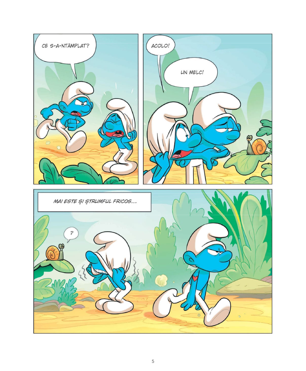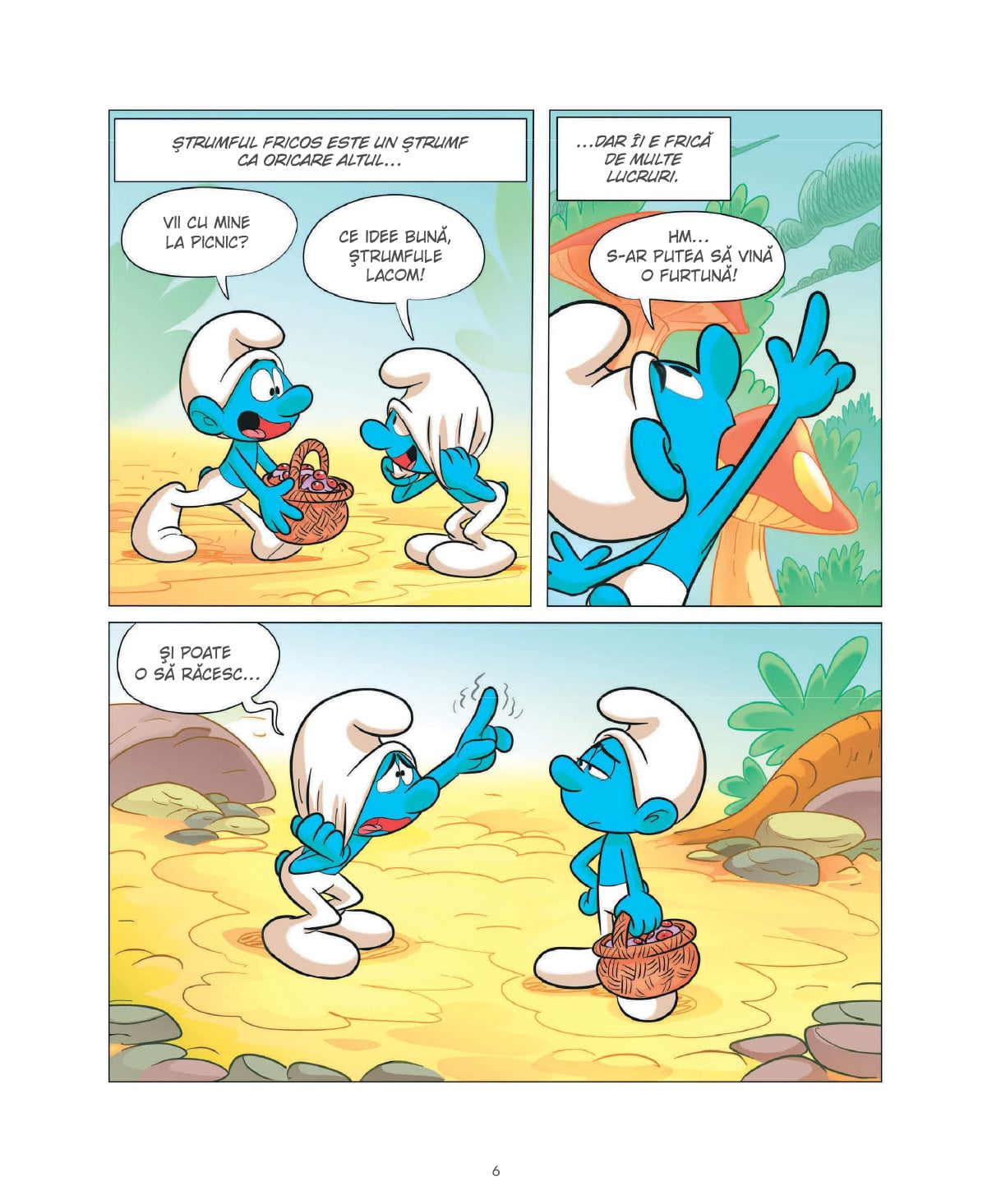 O bandă desenată tandră și educativă, care îi ajută pe copii să își înfrunte frica de întuneric. Ștrumful fricos descoperă, cu ajutorul prietenilor săi, că temerile pot fi depășite pas cu pas. O lectură prietenoasă, completată de un dosar educativ pentru părinți și copii.