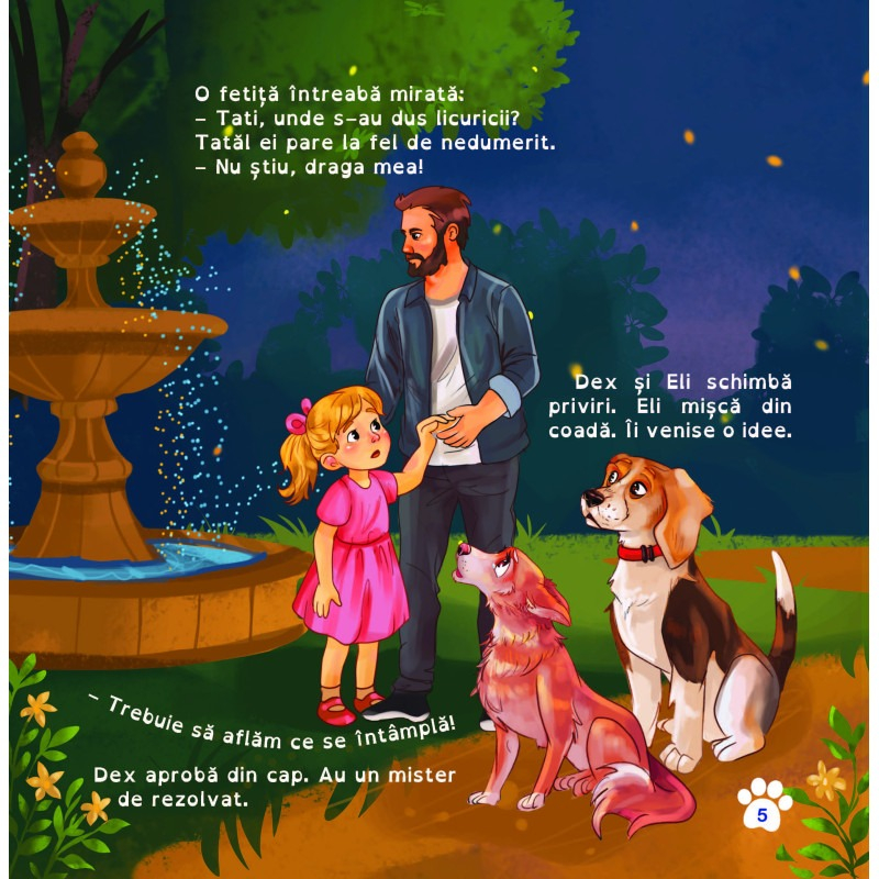 Această poveste caldă și plină de magie îi poartă pe cei mici într-o aventură alături de Dex, un beagle curios, și Eli, o cățelușă roșcată care îi este mereu alături. Cei doi pornesc într-o misiune curajoasă pentru a aduce înapoi lumina licuricilor dispăruți și pentru a reînvia bunătatea din inimile oamenilor. Cartea este ideală pentru copiii care iubesc poveștile despre prietenie, curaj și speranță.