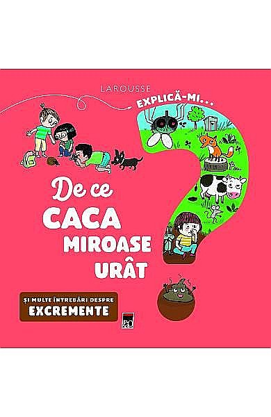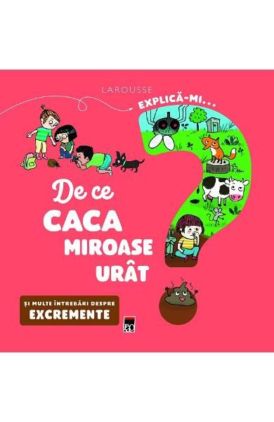 Explica-mi... de ce caca miroase urat? raspunde la 11 intrebarii puse de cei mici, intr-un stil prietenos si amuzant. Ilustratiile de pe pagina din stanga exemplifica totul, iar clapeta ofera raspunsuri pe intelesul lor. Pagina din dreapta aduce informatii care completeaza tabloul, pentru ca cei mici sa afle cat mai multe despre fiecare subiect.