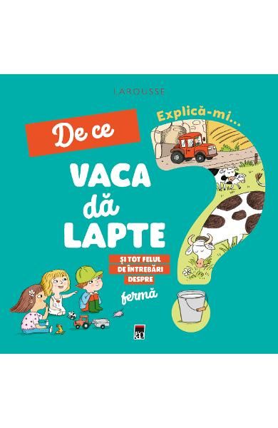 Aveti un copil prin preajma? E la varsta cand pune tot felul de intrebari? Iata o carte potrivita pentru aceasta etapa. Explica-mi: De ce vaca da lapte, a doua din serie, raspunde la 11 intrebarii puse de cei mici, intr-un stil prietenos si amuzant. Ilustratiile de pe pagina din stanga exemplifica totul, iar clapeta ofera raspunsuri pe intelesul lor. Pagina din dreapta aduce informatii care completeaza tabloul, pentru ca cei mici sa afle cat mai multe despre fiecare subiect. De ce nu sunt puisori in toate ouale? De ce e porcul murdar? De ce pe camp plantele cresc in randuri? De ce dintii iepurilor sunt lungi? Iata cateva dintre intrebarile la care cei mici vor gasi raspunsuri amuzante si frumos ilustrate. La finalul cartii, un tablou reuneste tot ce au aflat copiii despre ferma.