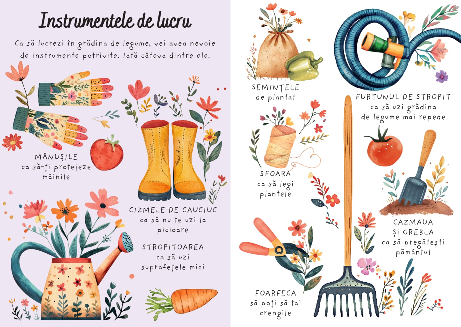 Universul grădinii prinde viață prin legume colorate, unelte de grădinărit, insecte prietenoase și detalii care îi ajută pe cei mici să înțeleagă mai bine ce se întâmplă în natură, atât la suprafață, cât și sub pământ. Fiecare etapă a jocului încurajează observarea, răbdarea și coordonarea mână–ochi.
