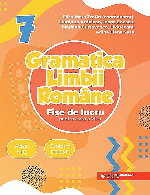 Gramatică. Fișe de lucru pentru clasa a VII-a este un auxiliar didactic realizat în conformitate cu programa școlară în vigoare, cu noua gramatică și cu DOOM3. Cartea cuprinde exerciții diverse, care acoperă toate conținuturile de la secțiunea elemente de construcție a comunicării din programa de gimnaziu, făcând legătura dintre gramatică și celelalte compartimente ale limbii. Astfel, conceptele gramaticale sunt corelate cu elementele de vocabular, stilistică, ortoepie și ortografie.