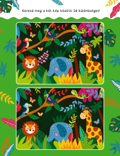 „Kaland a vadonban – Buborekmatricas foglalkoztato” este o carte interactivă ce invită copiii să descopere animalele junglei prin activități amuzante și captivante. Leul, girafa, zebra, maimuța și alți prieteni din sălbăticie îi așteaptă pe cei mici să îi coloreze, să rezolve exerciții și să participe la jocuri distractive.