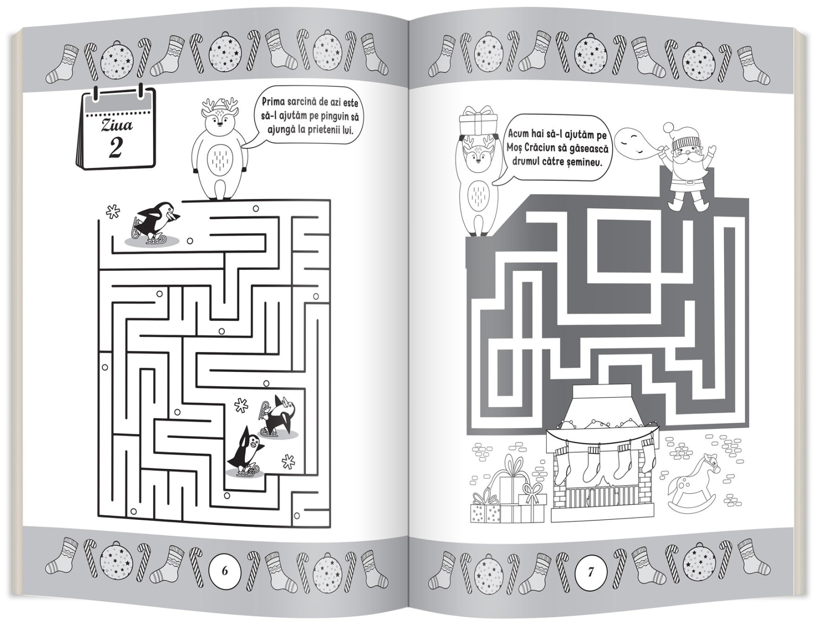 Labirinturi cu renii Moșului face parte din colecția Jocuri de Crăciun și este concepută pentru a transforma așteptarea sărbătorilor într-o experiență distractivă și educativă. Cartea include 25 de zile pline cu activități, fiecare având câte un labirint diferit, ideal pentru dezvoltarea atenției, concentrării și spiritului de observație.