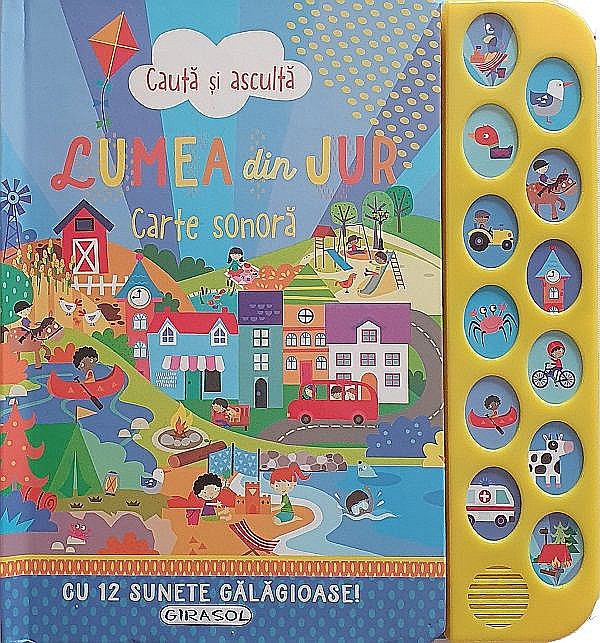 Priveste fiecare scena plina de activitati si gaseste cele 6 imagini ascunse. Apoi asculta sunetele din aceasta carte sonora distractiva.