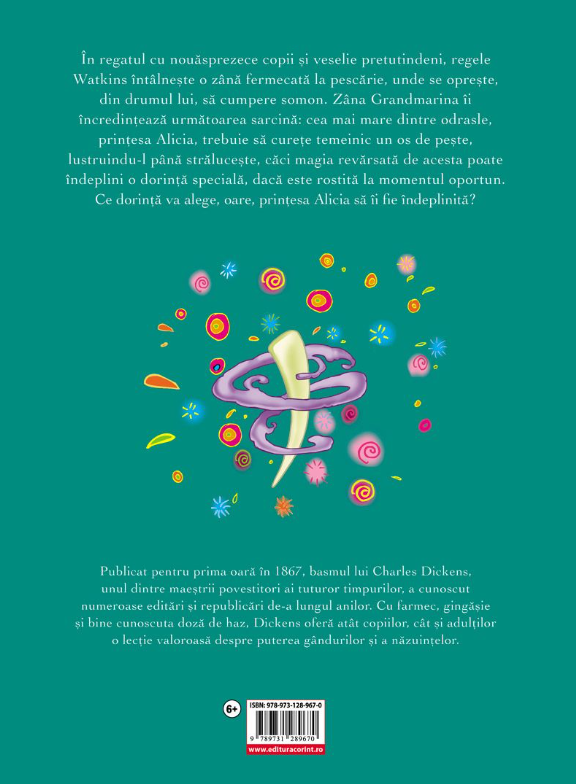 Cartea Osul de peste fermecat de Charles Dickens este un basm plin de farmec si umor, in care magia se impleteste cu lectiile de viata. Povestea printesei Alicia si a osului de peste magic vorbeste despre dorinte, bunatate si puterea gandurilor curate. Este o lectura incantatoare pentru copii si o adevarata comoara literara pentru intreaga familie.