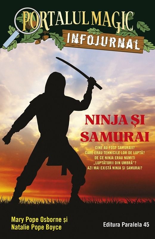 După aventura din Codul luptătorilor ninja, Jack şi Annie au avut multe întrebări: Cine erau samuraii? Care erau tehnicile lor de luptă? De ce ninja erau numiți „luptătorii din umbră”? Azi mai există ninja și samurai? Au răsfoit enciclopedii, au vizitat muzee, apoi au creat pentru tine acest INFOJURNAL special, plin de ilustraţii şi explicaţii.