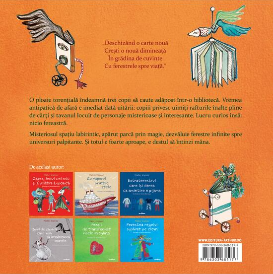 Spațiul labirintic, apărut parcă prin magie, dezvăluie treptat adevărate „ferestre” spre universuri neașteptate, fiecare carte devenind o deschidere către imaginație și aventură. Totul este la îndemână, trebuie doar să întinzi mâna și să începi să citești. O carte care transformă lectura într-o experiență poetică și vizuală, potrivită pentru copiii care iubesc poveștile pline de sens și frumusețe.