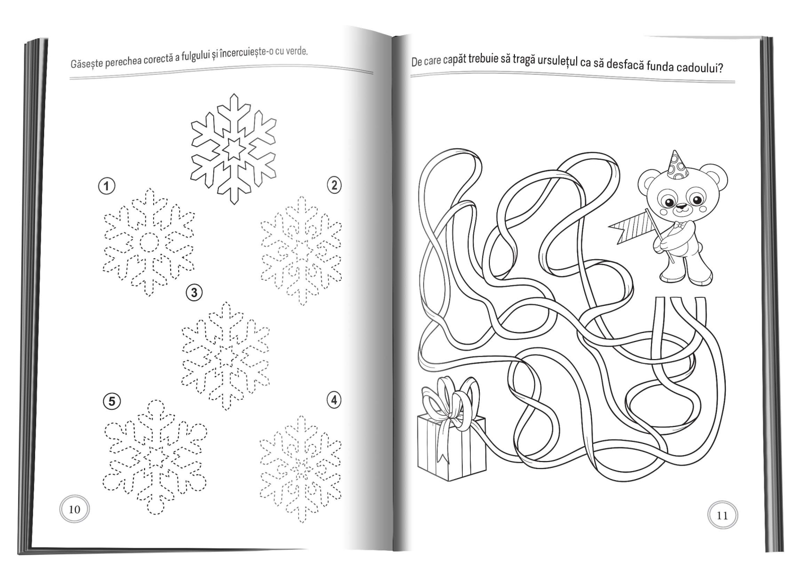 Această carte îi invită pe cei mici să descopere magia sărbătorilor prin joc și creativitate. Copiii pot rezolva labirinturi, potrive potrive perechile sau colora desene tematice. Este alegerea perfectă pentru momente liniștite petrecute lângă brad.