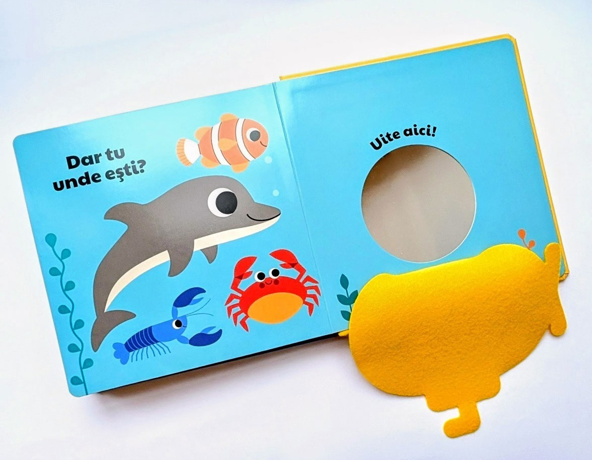 O carte interactivă adorabilă, creată special pentru cei mai mici cititori. Prin jocul clasic „cucu-bau”, bebelușii sunt invitați să descopere personaje ascunse sub clapete moi din fetru. O experiență tactilă și vizuală perfectă pentru primele momente de lectură.