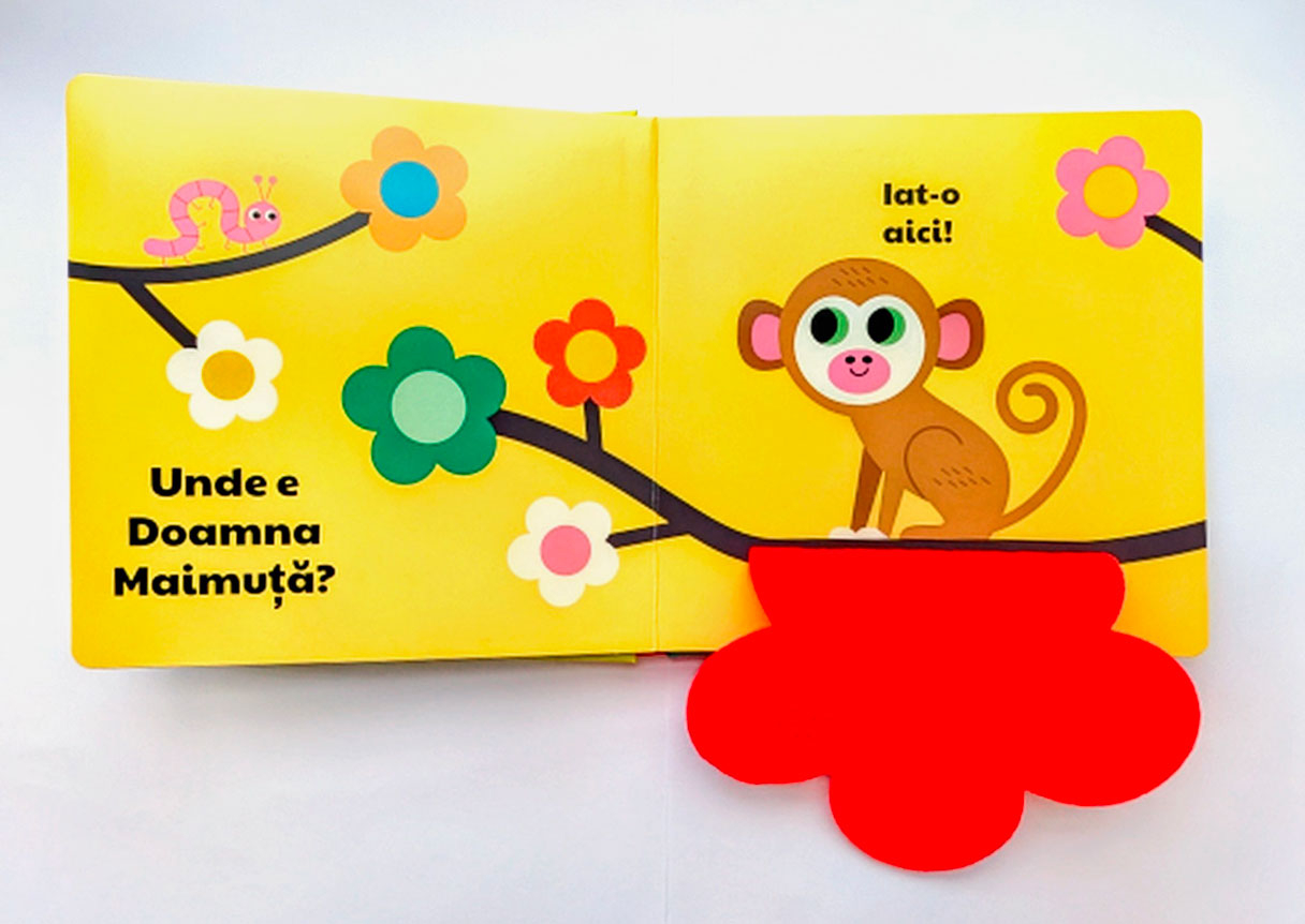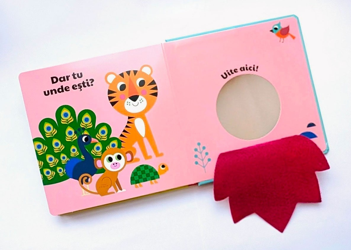 O carte interactivă adorabilă pentru cei mai mici cititori, plină de culori vii, animale simpatice și surprize tactile. Micuții sunt invitați să caute și să descopere personajele ascunse, ridicând clapetele textile. O experiență de lectură senzorială, perfectă pentru primele explorări.