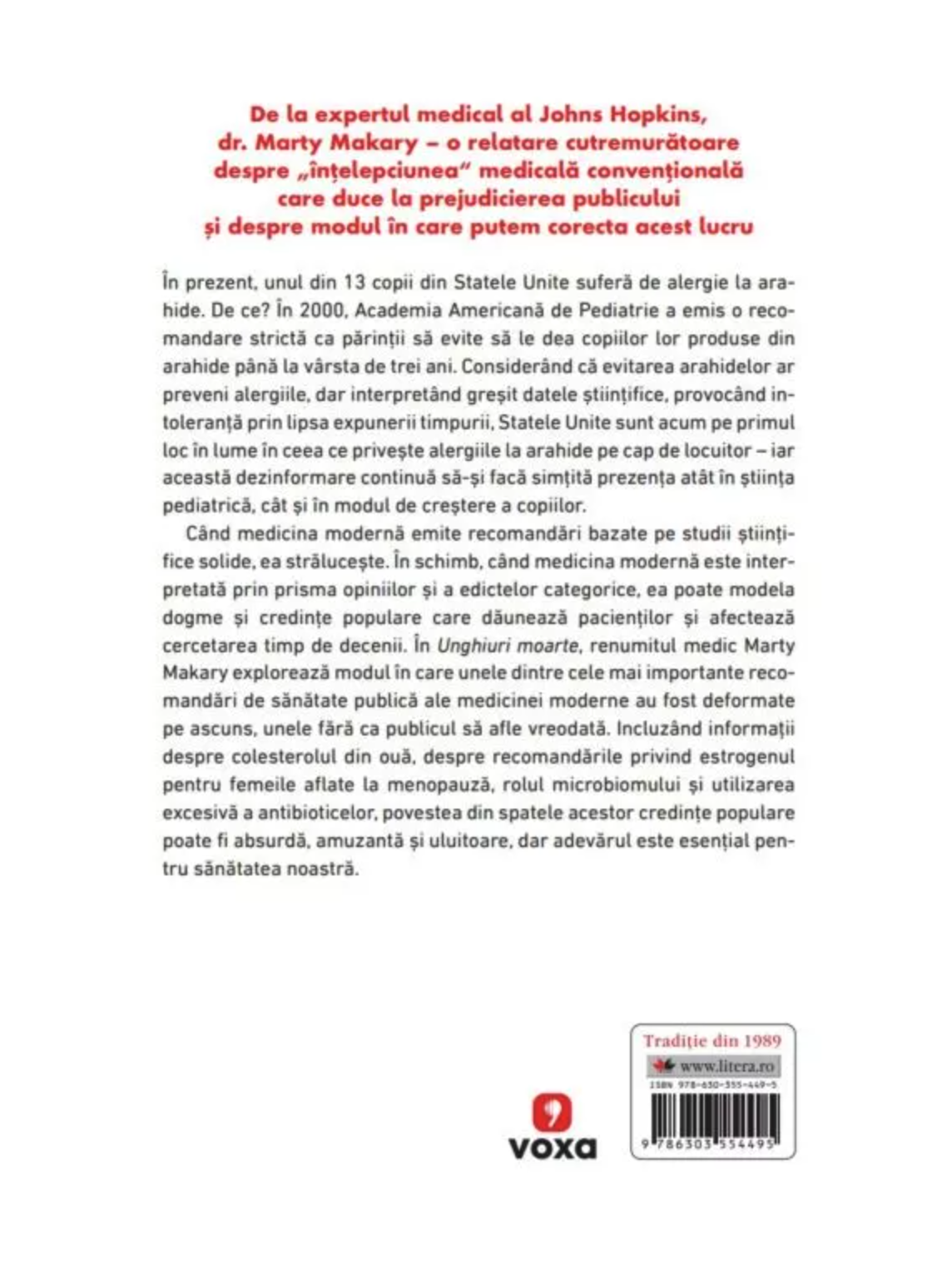 „Unghiuri moarte” este o carte necesară pentru orice cititor interesat de sănătate, pentru părinți, pentru profesioniști din domeniu și pentru toți cei care vor să înțeleagă mai bine modul în care se formează și se transmit recomandările medicale.