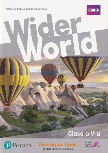 Beneficiile utilizării materialelor auxiliare care însoțesc manualul, ca suporturi de fixare și aprofundare, sunt deja bine cunoscute de profesioniștii din educație. În plus față de activitățile atractive și de explicațiile clare și accesibile, Wider World-Grammar Book pentru clasa a V-a oferă o reciclare permanentă și structurată a elementelor de gramatică prevăzute în programa de clasa a V-a pe măsură ce acestea sunt parcurse la clasă, alături de patru secțiuni de Grammar Check pe care elevii le pot parcurge individual acasă sau în clasă sub forma unor evaluări curente.