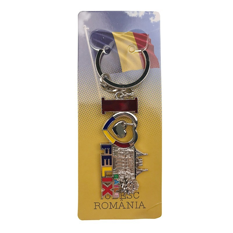 Breloc metalic cu inima, tricolor si scris "Baile Felix".