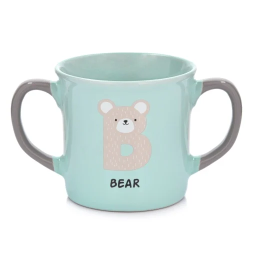 Această cană din ceramică, decorată cu un ursuleț simpatic și elemente delicate, este gândită specială pentru copii, dar poate fi și un cadou drăguț. Are o capacitate de 240 ml și o formă rotundă, confortabilă la utilizare, iar diametrul de aproximativ 7,6 cm o face ușor de manevrat. Cele două mânere laterale ajutați să vă puteți asigura autonomia, încurajând la masă. Culoarea turcoaz și ilustrațiile vesele transformă fiecare băutură într-un moment plăcut, fiind potrivită pentru utilizarea zilnică acasă.