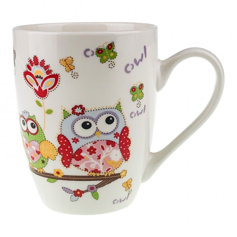 Cana din ceramică cu bufniță se remarcă prin ilustrațiile simpatice și pline de culoare, inspirate din lumea naturii. Decorul cu bufnițe stilizate, elemente florale și detalii jucăușe transformă această cană într-un obiect decorativ, dar și funcțional, potrivit pentru orice bucătărie sau birou.