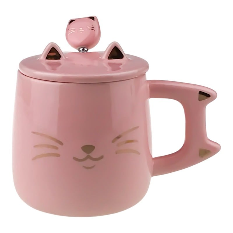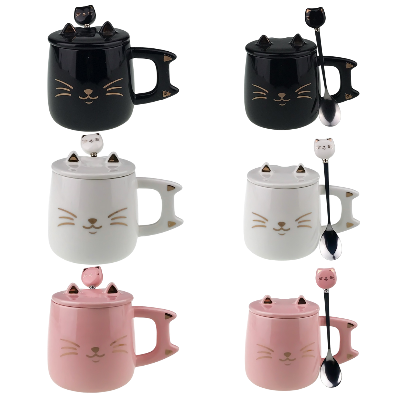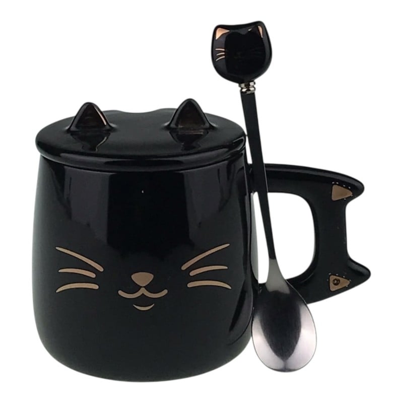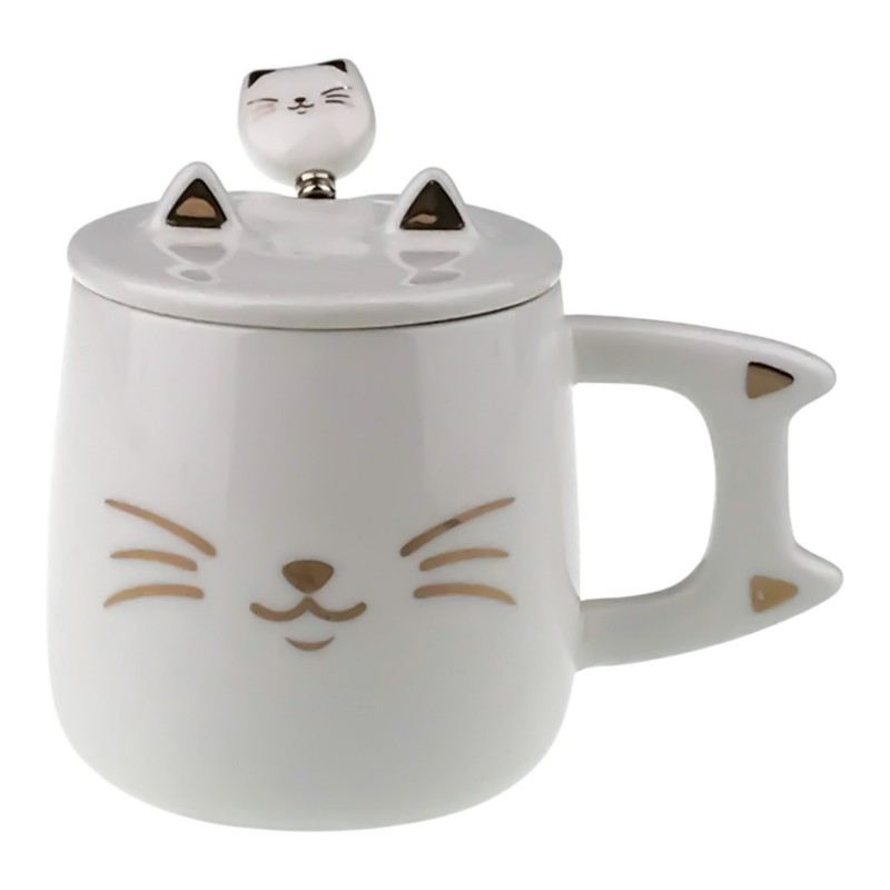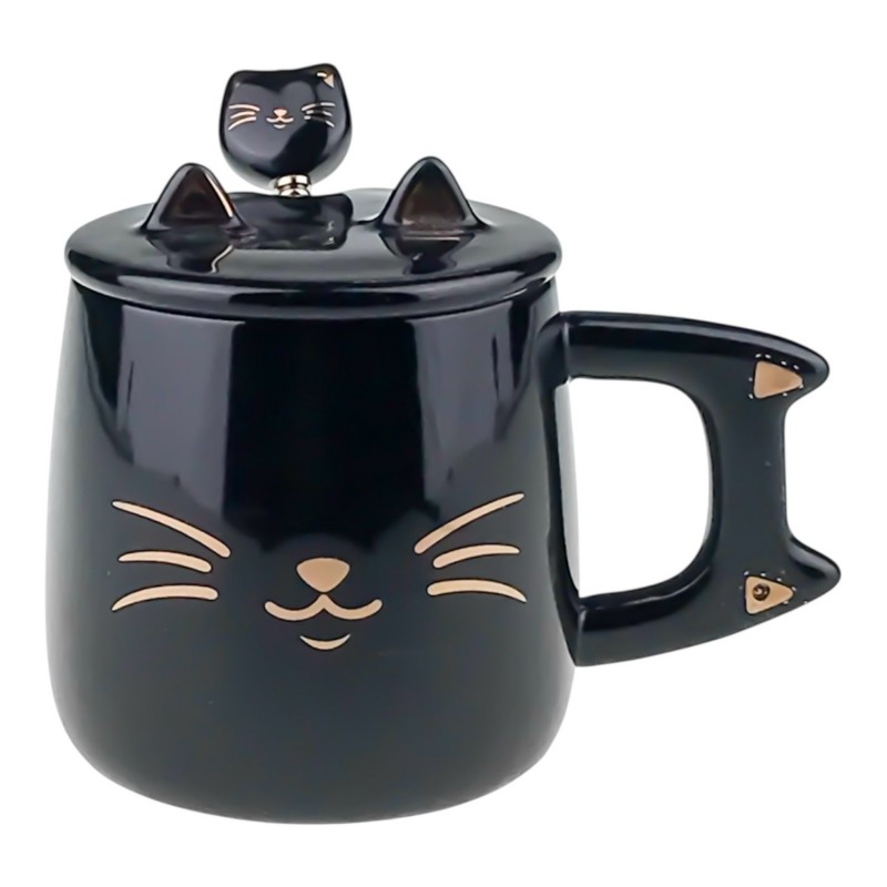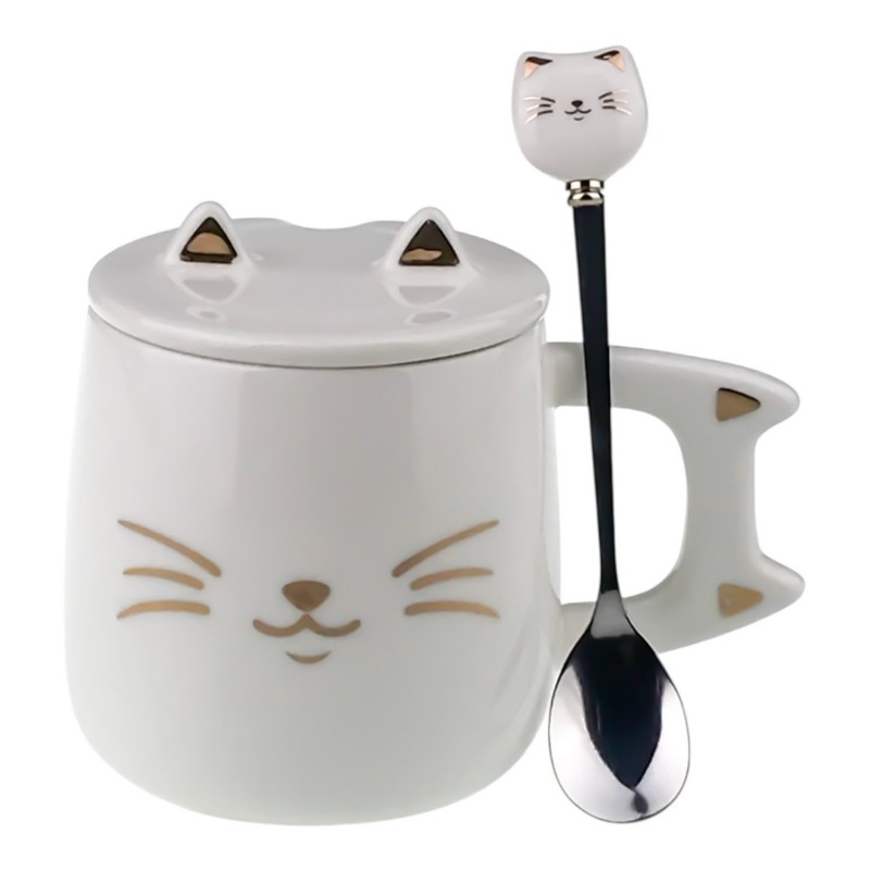 Această cană din ceramică cu pisică este prevăzută cu capac decorativ și linguriță din metal, fiind practică și adorabilă în același timp. Designul jucăuș o face perfectă pentru cafea, ceai sau cacao. Este ideală pentru momentele de relaxare sau ca idee de cadou.