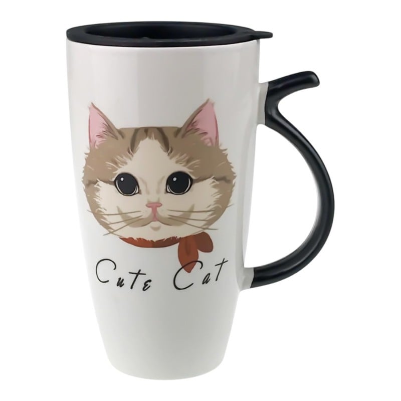 Această cană din ceramică cu cap de pisică aduce un plus de veselie fiecărei pauze de cafea sau ceai. Ilustrațiile delicate cu pisici, în stil Cute Cat, transformă cana într-un obiect plin de personalitate, potrivit atât pentru uz zilnic, cât și pentru a fi oferit cadou iubitorilor de animale.