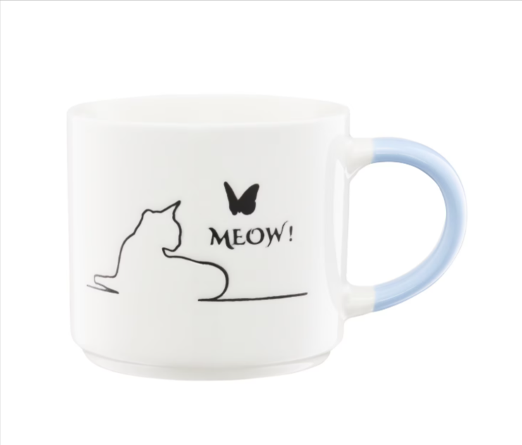 Cană mare din porțelan, decorată cu un model delicat de pisică și mâner albastru. Are o capacitate generoasă de 510 ml, fiind potrivită pentru cafea, ceai sau cacao. Un accesoriu practic și plin de farmec pentru utilizarea zilnică.