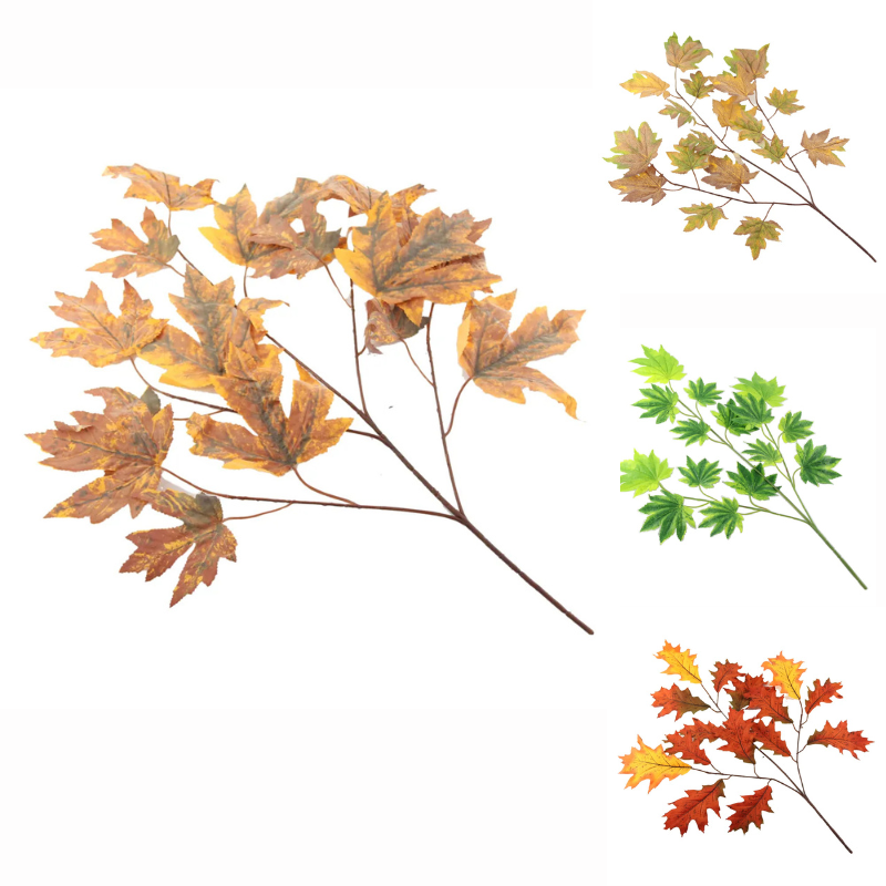 Această creangă decorativă este accesoriul ideal pentru a crea aranjamente de toamnă bogate și pline de realism. Cu o lungime de 70 cm, frunzele redau fidel paleta cromatică a sezonului, de la verde și galben auriu până la nuanțe intense de portocaliu și roșcat. Flexibilitatea tijei permite integrarea ușoară în vaze înalte sau folosirea în decoruri complexe pentru mese festive, oferind un aspect proaspăt și natural oricărui spațiu interior.
