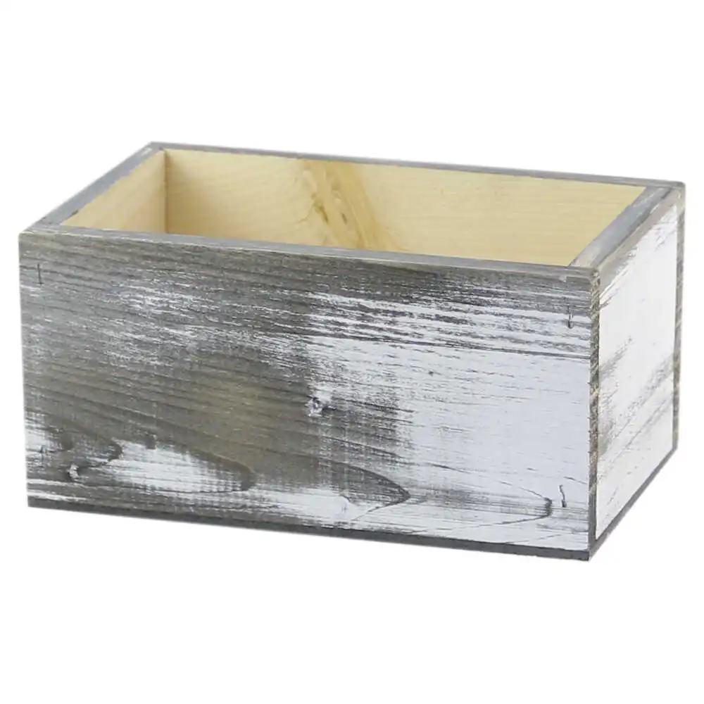 Puteti alege aceasta cutie din lemn alb antichizat pentru a aduce un farmec retro amenajarilor dumneavoastra interioare. Este bine sa cumparati acest produs deoarece structura sa rezistenta si versatila permite utilizarea atat ca suport pentru flori, cat si ca obiect de depozitare stilat pentru mici accesorii. Puteti folosi cutia de 18 x 11 x 9 cm pentru a crea piese centrale deosebite pentru mesele de nunta, botez sau alte ocazii speciale, greutatea sa redusa de 195 g facilitand manevrarea si plasarea pe suprafete delicate. Designul dreptunghiular simplu, combinat cu finisajul matuit, ofera libertate deplina in personalizarea cu dantele, panglici sau elemente naturale. Materialul de calitate asigura o durabilitate crescuta, pastrand aspectul impecabil al aranjamentelor dumneavoastra pe parcursul intregului an. Comandati acum aceasta cutie decorativa pentru a beneficia de un element de design atemporal care imbina utilul cu estetica provensala.