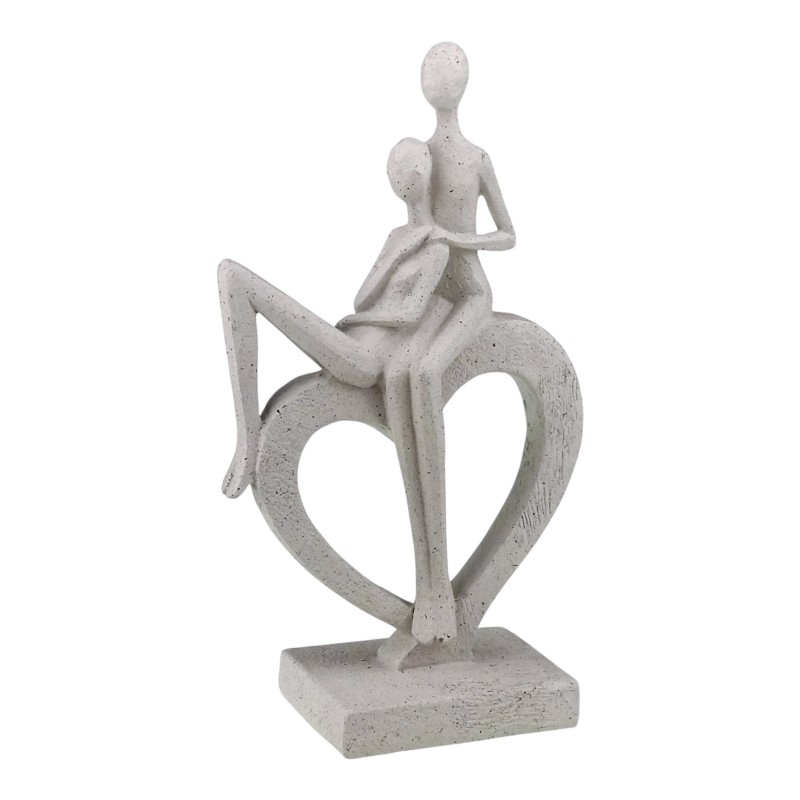 Decorațiunea din rășină în formă de inimă cu doi îndrăgostiți este un obiect decorativ rafinat, conceput pentru a exprima dragostea și armonia dintre două persoane. Siluetele stilizate ale cuplului sunt așezate delicat pe o inimă sculptată, creând un ansamblu echilibrat și plin de semnificație. Finisajul mat și nuanța neutră permit integrarea ușoară în diverse stiluri de decor, de la modern la romantic.