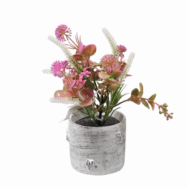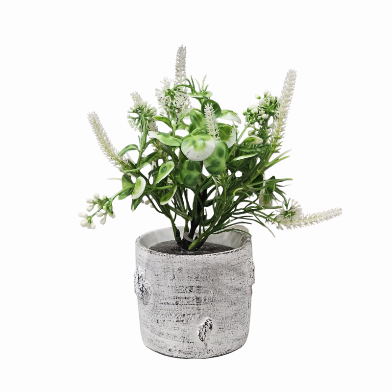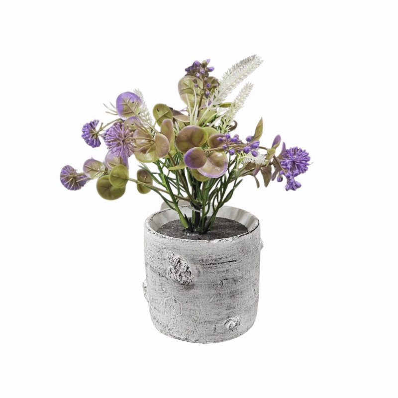 Ghiveciul cu flori artificiale de la Idei este conceput pentru a oferi o alternativă estetică și durabilă plantelor naturale, fiind ideal pentru spațiile cu lumină redusă sau pentru persoanele cu un program încărcat. Piesa centrală a acestui decor este ghiveciul realizat cu un finisaj deosebit ce reproduce fidel textura și nuanțele deschise ale trunchiului de mesteacăn, aducând un aer rustic și organic în interiorul casei. Designul său neutru permite integrarea facilă în diverse stiluri de amenajare, de la cel scandinav și minimalist, până la cel provensal sau tradițional.