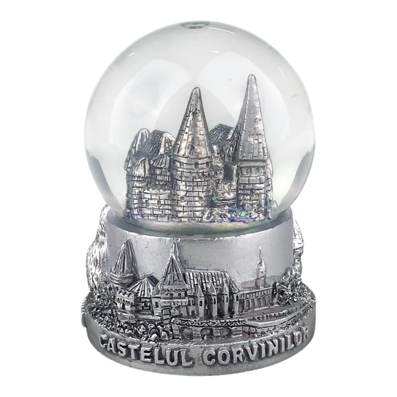 Acest glob decorativ surprinde eleganța și măreția Castelului Corvinilor, unul dintre cele mai impresionante monumente gotice din România. Realizat din sticlă transparentă și așezat pe un post detaliat din rășină, globul oferă un efect vizual spectaculos, perfect pentru a fi expus sau oferit cadou.