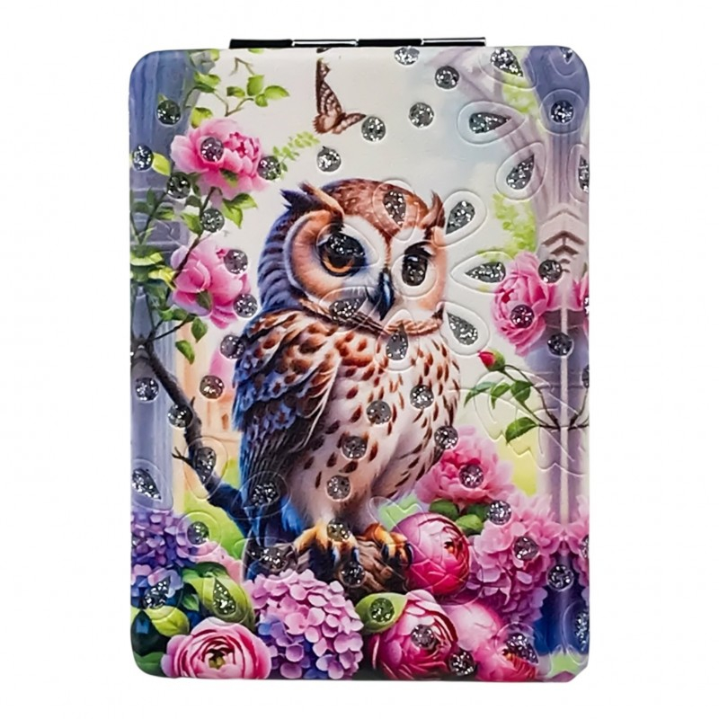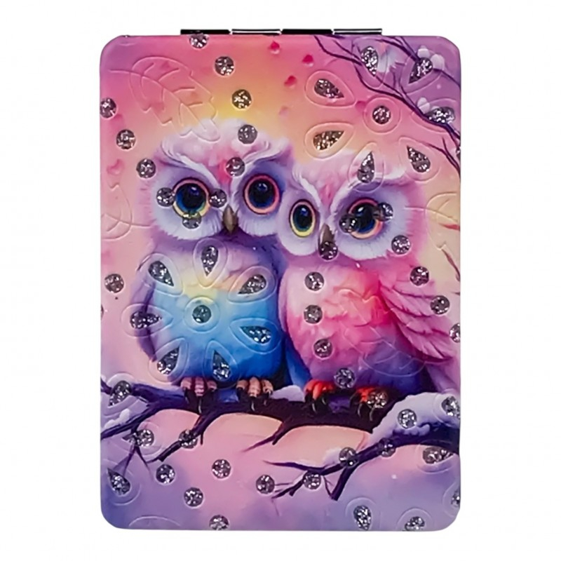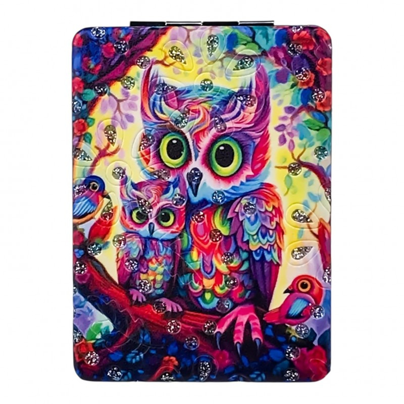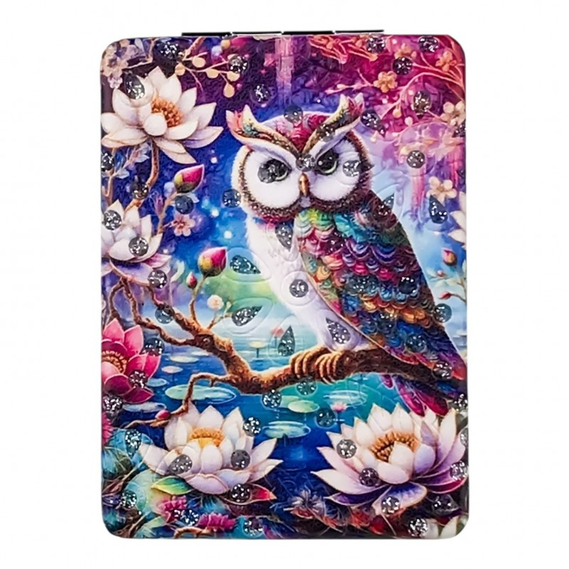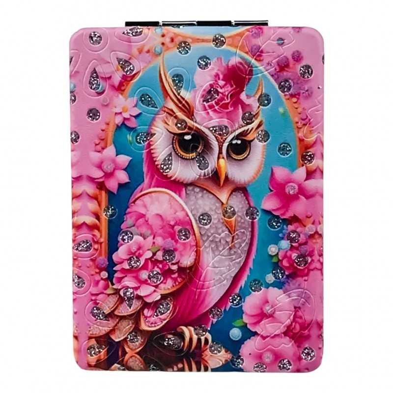 Oglinda de poșetă 6x9 cm este creată pentru a te însoți oriunde ai nevoie, fiind ideală pentru retușuri rapide de machiaj sau pentru orice moment în care vrei să-ți verifici look-ul. Se deschide tip carte și oferă două suprafețe de oglindire, astfel încât să vezi clar orice detaliu. Carcasa este decorată cu modele adorabile cu bufnițe în culori vibrante, accentuate cu strasuri aplicate pentru un plus de strălucire. Este o alegere inspirată atât pentru uz personal, cât și ca mic cadou pentru cineva drag. Dimensiunea compactă de 6x9 cm o face simplu de purtat în orice poșetă sau ghiozdan.