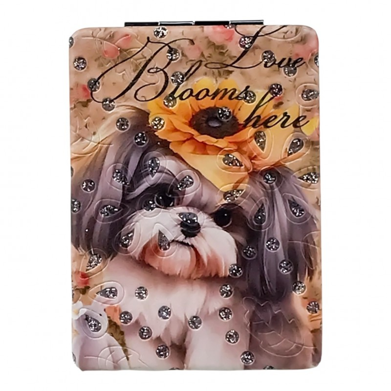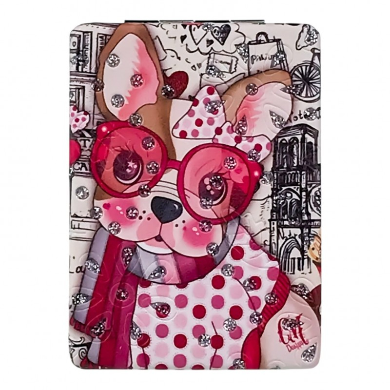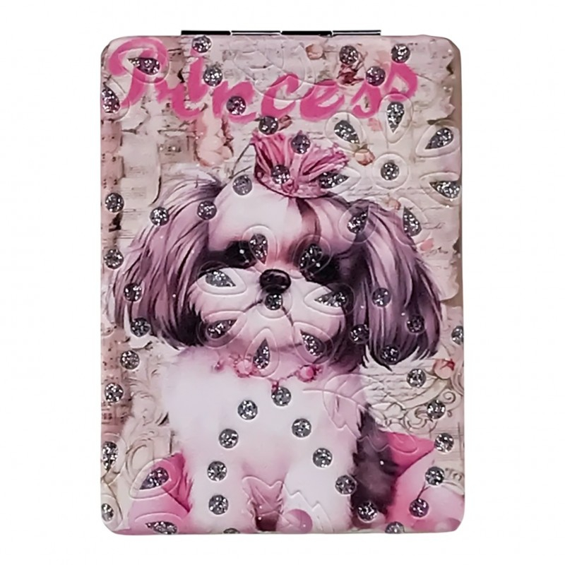 Oglinda de poșetă cu model de căței îți aduce zâmbetul pe buze ori de câte ori o folosești. Este compactă, practică și perfectă pentru retușuri rapide atunci când ești în mișcare. Se deschide ca o mică agendă și îți oferă două oglinzi utile în orice moment al zilei.