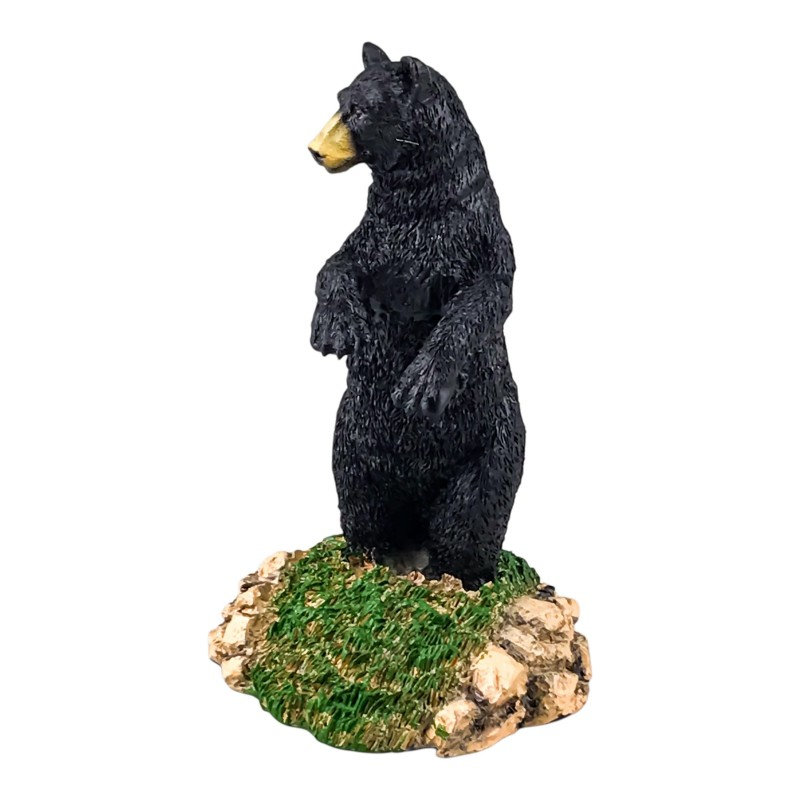 Acest ornament din rășină reprezintă un urs redat într-o poziție expresivă, stând pe picioarele din spate, cu o atitudine vigilentă și realistă.