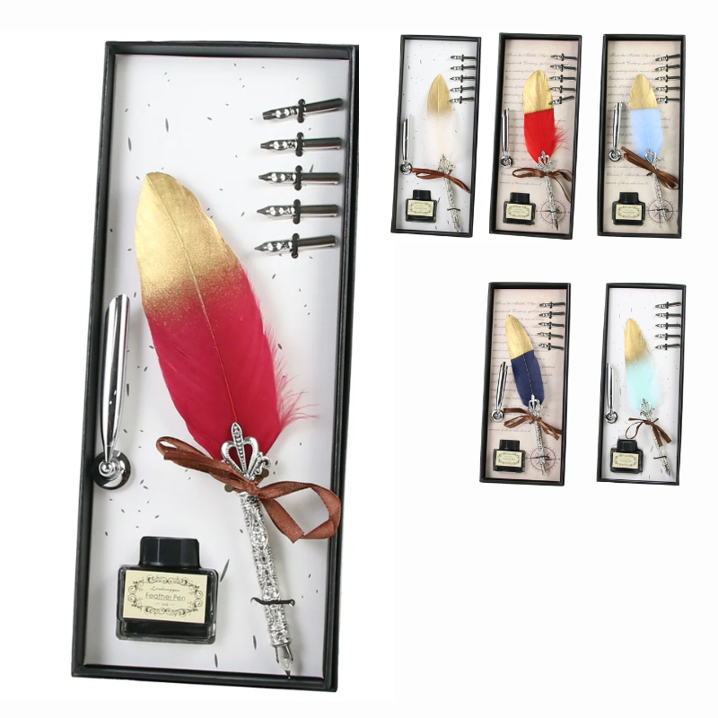 Toate elementele sunt așezate într-o cutie de prezentare elegantă, care protejează piesele și face setul potrivit pentru a fi oferit cadou. Este o alegere inspirată pentru iubitorii de scris, artiști, profesori, elevi pasionați de caligrafie sau pentru oricine își dorește un obiect special, cu aer vintage, care transformă scrisul într-un adevărat ritual.