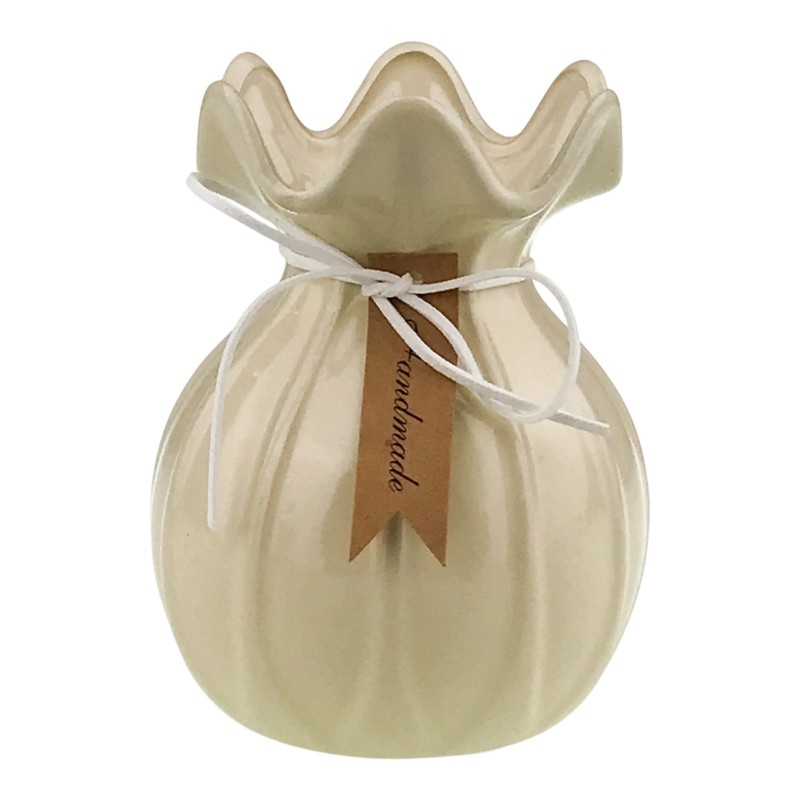 Vaza din ceramică cu gură ondulată are un design delicat și original, completat de un șiret decorativ. Culorile calde îi oferă un aspect plăcut și ușor de asortat. Este potrivită pentru flori sau ca piesă decorativă de sine stătătoare.