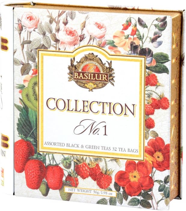 Patru ceaiuri asortate din gamele Bouquet (Green Freshness / White Magic) si Magic Fruits (Strawberry & Kiwi / Raspberry & Rosehip), cate 8 pliculete din fiecare. Ingrediente: 100% ceai NEGRU pur de Ceylon / ceai VERDE pur chinezesc + fructe si arome naturale