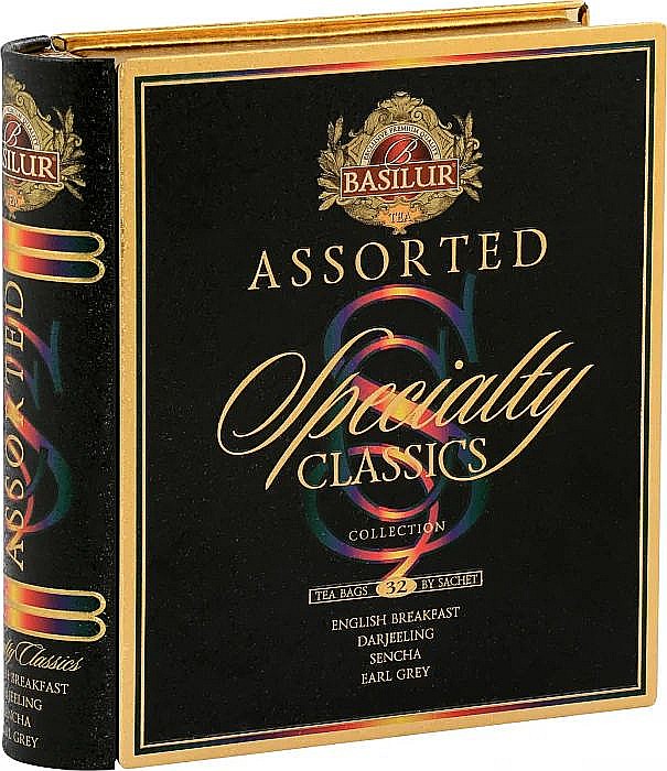 Patru sortimente de ceai negru si verde in acelasi ambalaj premium in forma de carte. 32 de pliculete ambalate individual, cate 8 pentru fiecare sortiment: English Breakfast, Darjeeling, Sencha, Earl Grey