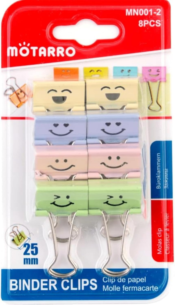 Adaugă un strop de culoare și voie bună în organizarea documentelor tale! Setul de 8 clipsuri metalice de 25 mm este ideal pentru prinderea fermă a foilor, fără să le deterioreze. Designul cu fețe zâmbitoare aduce un plus de veselie biroului tău.