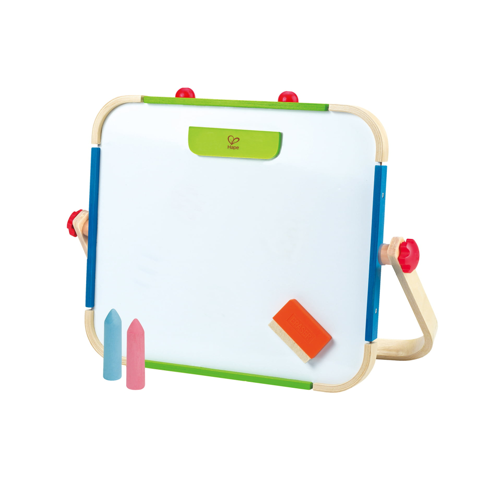 Sevaletul din lemn fata-verso este ideal pentru desen, scris și activități creative. Are o tabla magnetica pentru scris pe o parte si o tabla pentru desen si colorat pe cealalta. Este potrivit pentru copiii de peste 36 de luni.