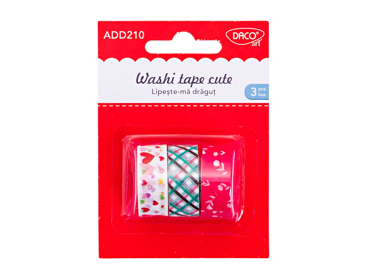 Setul contine 3 bucati banda adeziva imprimata, ideala pentru proiectele de lucru manual.