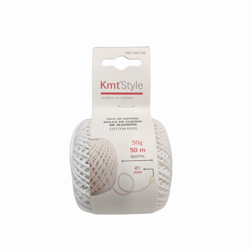 Aceasta sfoară din bumbac alb este realizată din fibre naturale și are o grosime de aproximativ 1 mm, fiind potrivită pentru o gamă largă de utilizări decorative și practice. Lungimea de aproximativ 50 m și greutatea de 50 go fac ușor de folosit și de depozitat, indiferent dacă este utilizat pentru legarea cadourilor, proiecte de bricolaj, decorațiuni, macrame, etichete sau diverse activități școlare și creative. Textura plăcută și culoarea albă oferă un aspect și elegant, integrându-se simplu în orice proiect. Sfoara este ambalată compactă, pentru o manipulare comodă și pentru a păstra ordonată.