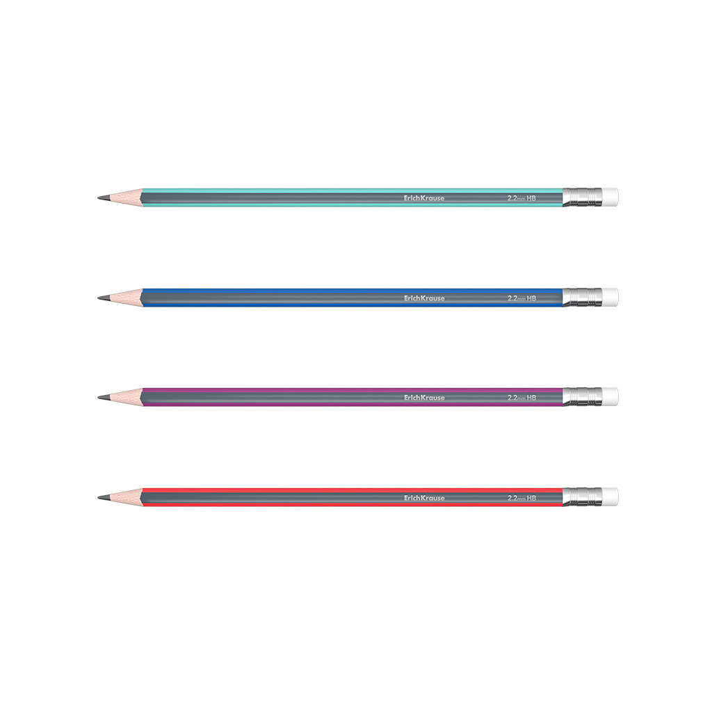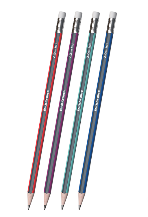 ErichKrause® Creioane grafice ErichKrause Sonata triunghiulare cu radiera HB culori diferite