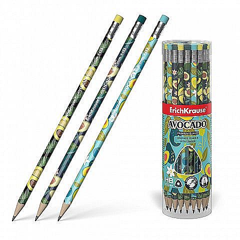 Creion simplu triangular cu radiera ErichKrause, model Avocado, duritate mina HB.