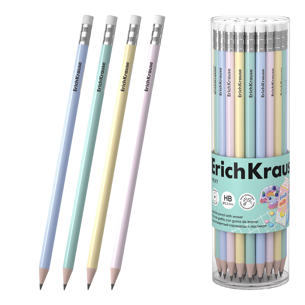 Creionul grafit ErichKrause Milky este ideal pentru scriere și desen, având un design delicat în culori pastelate. Oferă o utilizare confortabilă și trasare precisă. Prevăzut cu radieră, este perfect pentru activități zilnice.