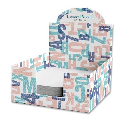Acesta este un set de foi de hârtie alba cu dimensiunea de 9x9 centimetri, ambalate într-o cutie de carton și protejate într-o folie termocontractibilă. Setul pare să aibă un design numit "Letters Puzzle", care ar putea sugera că fiecare foaie de hârtie are un element de puzzle sau un design de literă pe ea, dar detaliile exacte ar trebui verificate pe produsul specific sau pe ambalajul acestuia pentru mai multe informații. Acest tip de hârtie poate fi folosit pentru desen, scriere sau alte activități creative.