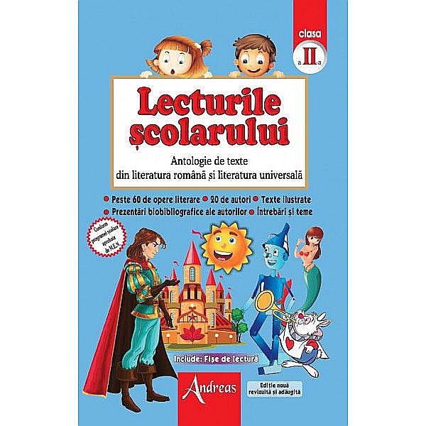 Tematica textelor selectate în aceasta serie de antologii pe clase încearca sa reflecte universul copilariei si valorile proprii acestuia. Am cautat ca operele din Lecturile scolarului clasa a doua, în proza sau în versuri, sa fie într-un limbaj accesibil, iar acolo unde au intervenit cuvinte mai dificile, ele au fost explicate, întrebarile având rolul de a verifica modul de percepere a mesajului transmis, dar si atentia si capacitatea de întelegere a copilului.
